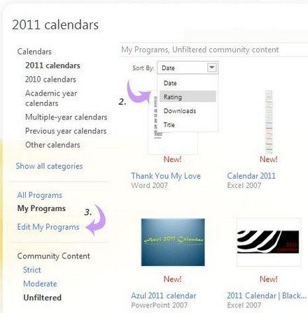1. Để khám phá bộ sưu tập đầy đủ các mẫu lịch năm 2011, hãy truy cập đường dẫn tải xuống được cung cấp ở trên. Những mẫu lịch này tương thích và có thể được xem, chỉnh sửa, cũng như sử dụng trong cả Microsoft Office 2007 và Microsoft Office 2010.