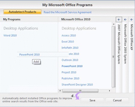 4. Trong hộp thoại hiển thị, bạn có thể chọn nhiều chương trình Office cùng lúc. Chỉ cần kéo tên chương trình sang cột bên trái để xem các mẫu lịch tương thích. Sau khi đã chọn, hãy nhấp vào nút "Save" để tải xuống các mẫu lịch cho các chương trình đã chọn.