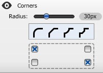 - : Thay đổi độ lớn nhỏ của bốn góc bo tròn. Bạn cũng có thể chọn hình dạng và vị trí của các góc bo tròn.