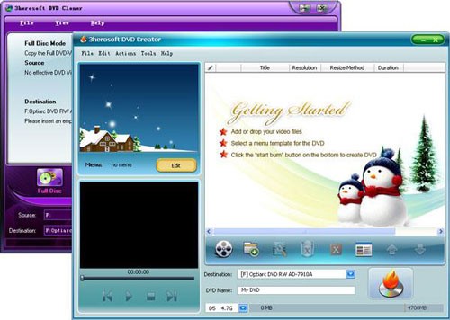- Bao gồm hai công cụ DVD mạnh mẽ: Bộ phần mềm tích hợp cả 3herosoft DVD Creator và 3herosoft DVD Cloner.