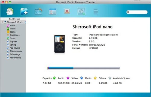 Giải pháp Truyền Dữ liệu iPod to Computer Transfer for Mac của 3herosoft