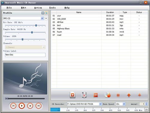 Ngoài ra, 3herosoft Music CD Burner còn hỗ trợ xóa thông tin đĩa CD và hiển thị thông tin chi tiết về các file nguồn trước khi tiến hành ghi đĩa.