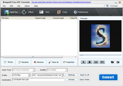 4Easysoft Free ASF Converter là một phần mềm được ưa chuộng, chuyên dùng để chuyển đổi các tập tin video sang định dạng ASF. Ứng dụng này còn có khả năng tách riêng âm thanh từ các file ASF, lưu trữ dưới dạng MP3 hoặc MP2.