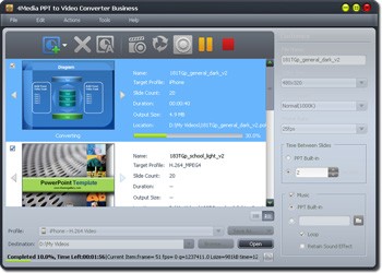 Với 4Media PPT to Video Converter, việc chuyển đổi hàng loạt file PPT cùng lúc trở nên nhanh chóng và đơn giản, chỉ mất vài phút để hoàn tất.