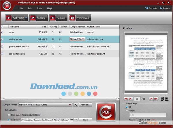 - Cho phép chuyển đổi toàn bộ file PDF hoặc chỉ các trang cụ thể mà bạn lựa chọn.