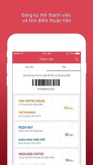 Ứng dụng cho phép lưu trữ tất cả các thẻ thành viên của các nhà hàng khác nhau trong một không gian duy nhất, loại bỏ sự bất tiện khi phải mang theo nhiều thẻ.