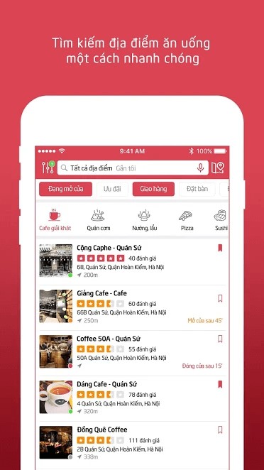 Đặt bàn và yêu cầu giao hàng trực tiếp trên ứng dụng.
