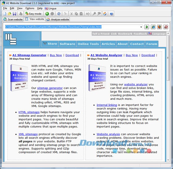 A1 Website Download là một ứng dụng hữu ích, cho phép người dùng tải về và lưu trữ toàn bộ nội dung của một trang web, bao gồm các diễn đàn trực tuyến, thư viện ảnh, sách điện tử và các bài viết khác.