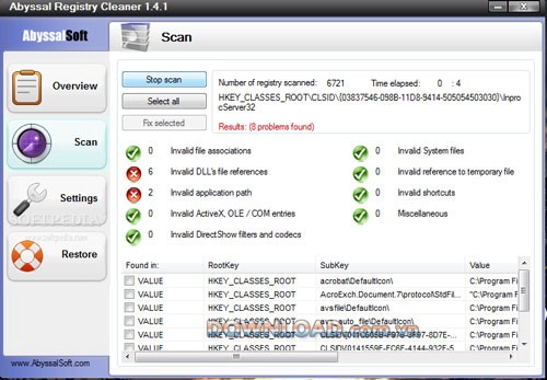 Abyssal Registry Cleaner là một ứng dụng hoàn toàn miễn phí, được thiết kế để dễ dàng quét và khắc phục các vấn đề tồn tại trong registry của hệ thống.