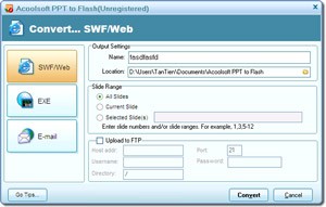 Với Acoolsoft PPT to Flash, việc lan tỏa những ý tưởng, thông tin trong bài PowerPoint đến với nhiều người trở nên hiệu quả hơn. Bạn có thể dễ dàng chia sẻ bản trình bày trên trang web cá nhân hoặc gửi qua email với dung lượng file được tối ưu hóa.