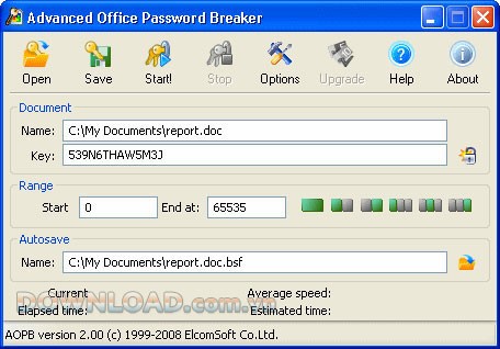 Advanced Office Password Breaker hỗ trợ mở khóa các dữ liệu được tạo ra bởi Microsoft Office Word và Excel phiên bản 97 và 2000.