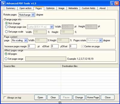 Ngoài ra, Advanced PDF Tools còn cung cấp khả năng thiết lập các thuộc tính quan trọng như thao tác mở file, bố cục trang, kích thước trang, lề trang, định hướng trang và metadata.