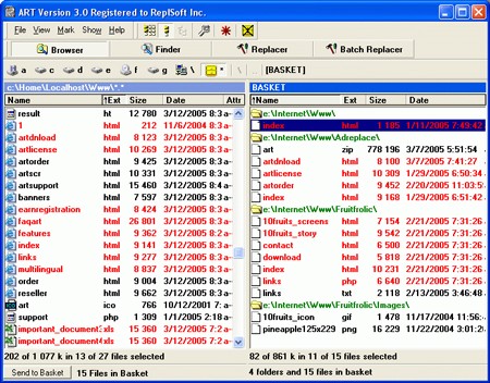Để bắt đầu, hãy xác định thư mục chứa các file cần chỉnh sửa trong panel bên trái. Sau đó, gửi toàn bộ các file trong thư mục đó vào Basket bằng cách nhấp vào Send to Basket.