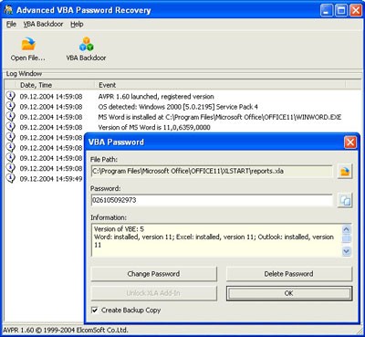 Advanced VBA Password Recovery là phần mềm có chức năng chính là dò tìm mật khẩu của tất cả các file được tạo ra bởi trình biên dịch Visual Basic for Application.