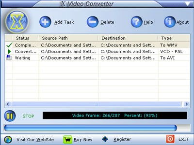 Advanced X Video Converter hỗ trợ hầu hết các định dạng video thông dụng hiện nay, bao gồm AVI (DivX, XviD...), MPEG (MPEG-1, MPEG-2), MOV (QuickTime), WMV/ASF, MP4, 3GP, M4V, VCD/DAT và SVCD. Nếu bạn đang sở hữu một thư viện các file video cần chuyển đổi sang một định dạng khác, phần mềm này cho phép bạn xử lý chúng nhanh chóng thông qua chế độ chuyển đổi hàng loạt.