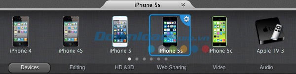 Chương trình cung cấp sẵn các thiết lập video tối ưu cho iPhone, iPad, PSP, iPod, Xbox 360, Zune và nhiều thiết bị khác.