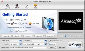 Aiseesoft DVD Ripper cho Mac được đánh giá là một trong những phần mềm ripping DVD hàng đầu, được phát triển đặc biệt cho hệ điều hành Mac OS X.