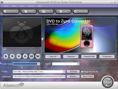 Một số tính năng chính của Aiseesoft DVD to Zune Converter: