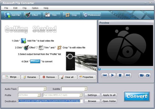 Aiseesoft Flip Converter là một phần mềm chuyên dụng, được thiết kế để chuyển đổi các video Flip (ở định dạng .MP4) được tạo ra từ dòng máy quay bỏ túi Flip, bao gồm Flip Ultra, Flip Ultra HD, Flip Mino và Flip Mino HD.