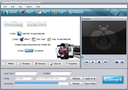 Với vai trò là một ứng dụng iPhone 4 chất lượng cao, Aiseesoft iPhone 4 Movie Converter được trang bị nhiều công cụ chỉnh sửa video mạnh mẽ.