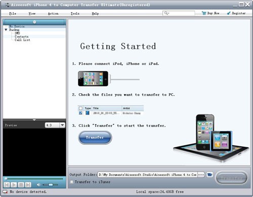 Các tính năng chính của Aiseesoft iPhone 4 to Computer Transfer:
