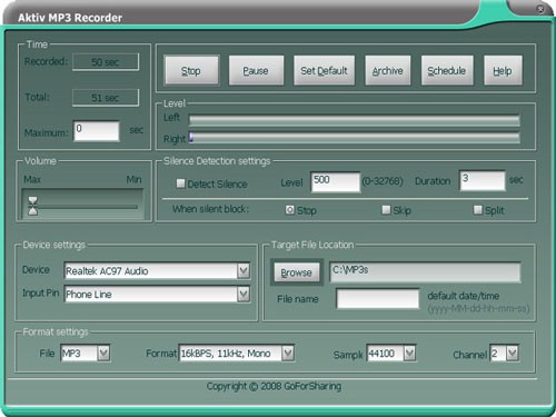 Xem thêm: Aktiv MP3 Recorder 3.4 - Phần mềm ghi âm miễn phí .