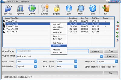 Allok AVI MPEG Converter được thiết kế để giúp bạn chuyển đổi nhiều định dạng video cần thiết, bao gồm cả các định dạng AVI, DivX, MPEG, VCD, SVCD, DVD, WMV và ASF.