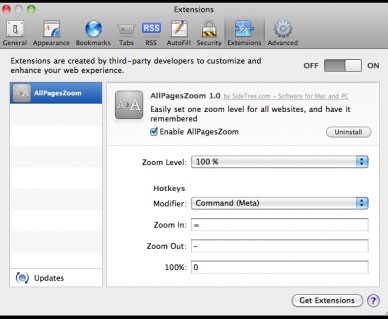 Theo mặc định, AllPagesZoom sẽ thay đổi các phím tắt phóng to trang web trên hệ điều hành macOS (tức là các phím +, -, và 0). Điều này giúp người dùng dễ dàng kiểm soát và tùy chỉnh trải nghiệm xem trang web của mình.