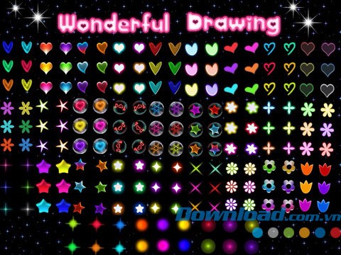 Bạn có thể lựa chọn từ hơn 140 hình nền tuyệt đẹp, được chia thành 10 chủ đề: Fantasy, Thiên nhiên, Bảng, Hoa, Ngôi sao, Trái tim, Em bé, Sinh nhật, Halloween và Giáng sinh.