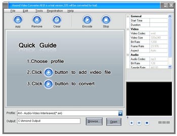 Giao diện Amond AVI/.../MP3 Video Converter