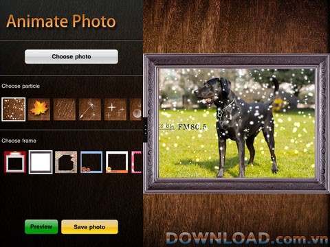 Animate Photo Free for iPad mang đến cho người dùng khả năng thêm vào những hiệu ứng hình ảnh ấn tượng, biến đổi bức ảnh tĩnh trở nên sống động hơn bao giờ hết. Các hiệu ứng đa dạng như tuyết rơi, bong bóng bay, mưa rơi, hay những chiếc lá vàng nhẹ nhàng bay lượn đều có thể dễ dàng được bổ sung.