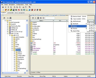 Hơn nữa, Ant Commander còn cung cấp các tiện ích như lịch sử thao tác (History), đánh dấu trang (Bookmark), và khả năng mở rộng chức năng thông qua việc cài đặt các plugin.