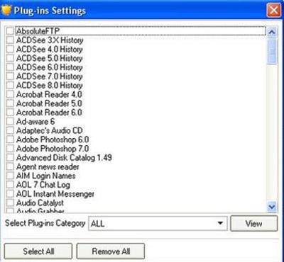 3. Loại bỏ dấu vết của các ứng dụng khác: Anti Tracks có khả năng xóa dấu vết trong hàng trăm ứng dụng khác nhau, bao gồm cả những phần mềm phổ biến như: ACDSee, Acrobat Reader, Adobe Photoshop, Eudora, GetRight, ICQ, Windows Media Player, RealPlayer, Winamp, WinZip, và nhiều ứng dụng của Google… Chỉ cần nhấp vào nút “Plug-Ins” và chọn các ứng dụng đã cài đặt từ danh sách được Anti Tracks cung cấp.