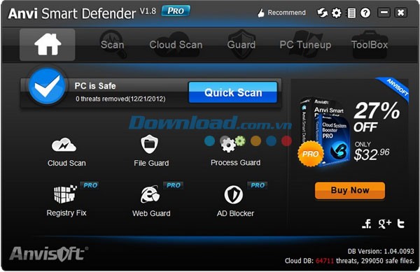 Anvi Smart Defender Pro cho phép người dùng nhanh chóng xác định và xóa bỏ các loại phần mềm nguy hiểm như phần mềm gián điệp, mã độc, worm, trojan và các mối đe dọa tương tự.