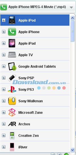 Nhờ đó, bạn có thể thoải mái xem video trên nhiều thiết bị khác nhau, từ điện thoại di động, máy nghe nhạc MP3/MP4 cho đến các thiết bị giải trí tại gia.