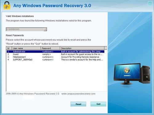 Any Windows Password Recovery 3.0 được thiết kế như một công cụ chuyên nghiệp, chuyên dụng cho việc khôi phục mật khẩu Windows. Quá trình này được thực hiện một cách nhanh chóng, chỉ với vài bước đơn giản.