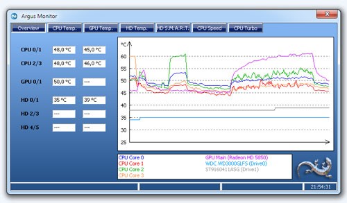 Argus Monitor cũng giám sát và tạo đồ thị biểu diễn sự thay đổi nhiệt độ của GPU và CPU.