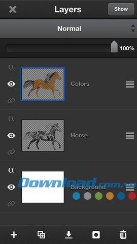 Ứng dụng cung cấp các maket layer và bộ chuyển đổi layer/bộ chọn để di chuyển, chia tỷ lệ, xoay (đa chạm), lật, xoay trái/phải, tô màu/xóa.