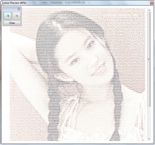 Ngay sau khi chọn ảnh, chương trình sẽ hiển thị phiên bản mới với phong cách hoàn toàn khác biệt, nhưng vẫn giữ được nội dung chính thông qua các đường nét được tạo thành từ ký tự. Ban đầu, ảnh sẽ được hiển thị dưới dạng trắng đen. Để xem phiên bản có màu, hãy nhấn vào nút Colour Preview, giúp làm nổi bật các chi tiết quan trọng trong ảnh.