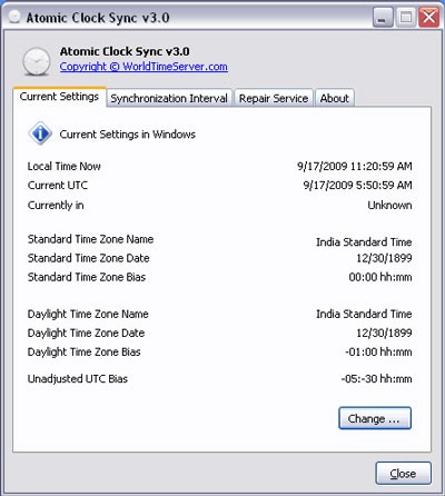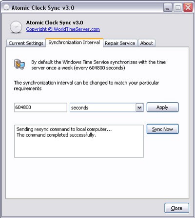 Việc thực hiện đồng bộ hóa trở nên dễ dàng hơn bao giờ hết với tiện ích Atomic Clock Sync, một công cụ nhỏ gọn với dung lượng chỉ 391 KB. Chương trình này hỗ trợ sửa chữa các lỗi liên quan đến Windows Time Server và đồng bộ hóa thời gian máy tính với đồng hồ nguyên tử của Viện Chuẩn hóa và Công nghệ Quốc gia Hoa Kỳ (NIST).