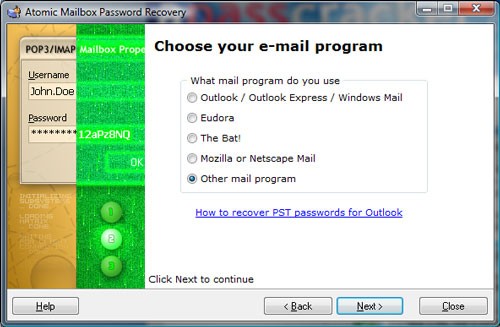 Khi đối mặt với tình huống quên mật khẩu email, Atomic Mailbox Password Recovery có khả năng khôi phục chúng một cách dễ dàng trực tiếp từ ứng dụng email của bạn.