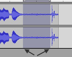 Chọn một đoạn âm thanh như vậy bằng cách sử dụng chuột để kéo và tô sáng toàn bộ chiều dài của đoạn phẳng, tương tự như hình minh họa:
