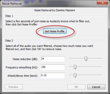 Nhấn vào nút Get Noise Profile. Cửa sổ popup sẽ đóng lại, đưa bạn trở về giao diện chính của Audacity. Lúc này, chọn toàn bộ âm thanh ghi âm bằng tổ hợp phím Ctrl-A trên bàn phím: