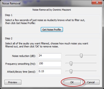 Thông thường, việc giữ nguyên các thiết lập mặc định là đủ tốt, sau đó chỉ cần nhấn nút OK. Sau khi quá trình xử lý hoàn tất, bạn sẽ nhận thấy Audacity đã làm giảm độ nhiễu của các phần sóng âm: