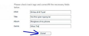 Audiko cho phép bạn chỉnh sửa một số thông tin liên quan đến đoạn nhạc chuông vừa tạo. Sau khi hoàn tất, hãy nhấp vào "Done" để tiến hành cắt và lưu đoạn nhạc đã chọn.