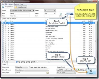 Quá trình sao chép nhạc từ đĩa CD cũng tương tự như chuyển đổi file âm thanh. Điểm khác biệt là người dùng có thể tìm kiếm thông tin về đĩa CD trực tuyến thông qua cơ sở dữ liệu FreeDB. Nếu thông tin này có sẵn, chương trình sẽ tự động tải về các dữ liệu liên quan đến nghệ sĩ, album và tiêu đề bài hát.