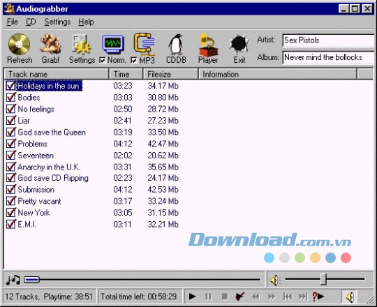 Xem thêm: Audiograbber 1.83 - Sao chép Âm thanh .