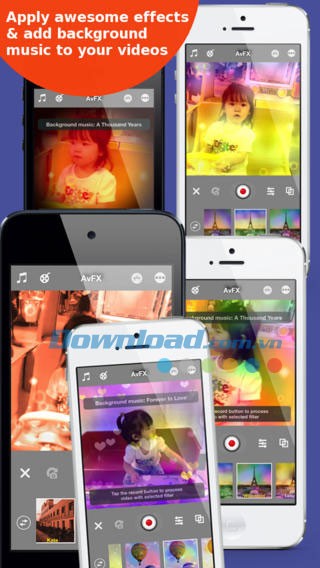 Ghi lại những khoảnh khắc đáng nhớ trong cuộc sống bằng cách sử dụng ứng dụng AvFX for iOS. Quy trình sử dụng đơn giản và thân thiện: chỉ cần chọn một bộ lọc (hoặc thêm nhạc nền bằng cách chạm vào phần ghi chú nhạc), nhấn nút quay và dừng lại khi hoàn tất. Sau đó, bạn có thể chia sẻ ngay lập tức tác phẩm của mình lên Instagram, Facebook, Twitter , YouTube và nhiều nền tảng khác.