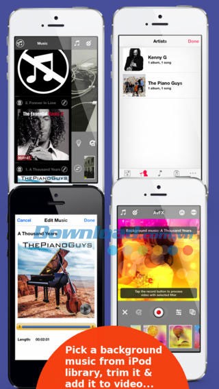 - Người dùng có thể dễ dàng thêm nhạc nền từ thư viện iPod vào video của mình. Công cụ cho phép cắt nhạc với độ dài tùy chỉnh, đảm bảo sự phù hợp hoàn hảo với nội dung clip.