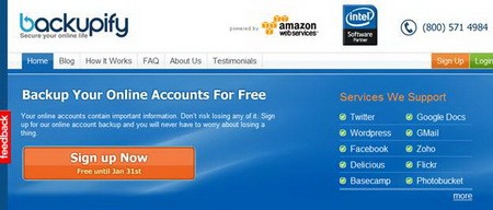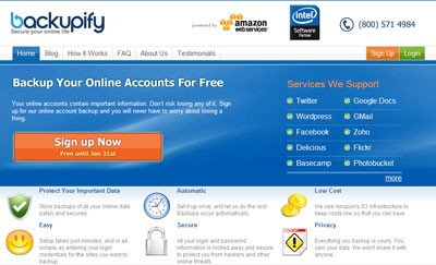 Đặc biệt, từ thời điểm hiện tại đến ngày 31 tháng 1 năm 2010, Backupify đang triển khai chương trình khuyến mãi hấp dẫn. Người dùng có thể đăng ký tài khoản miễn phí để được hưởng quyền lợi sao lưu dữ liệu vĩnh viễn với dung lượng không giới hạn.